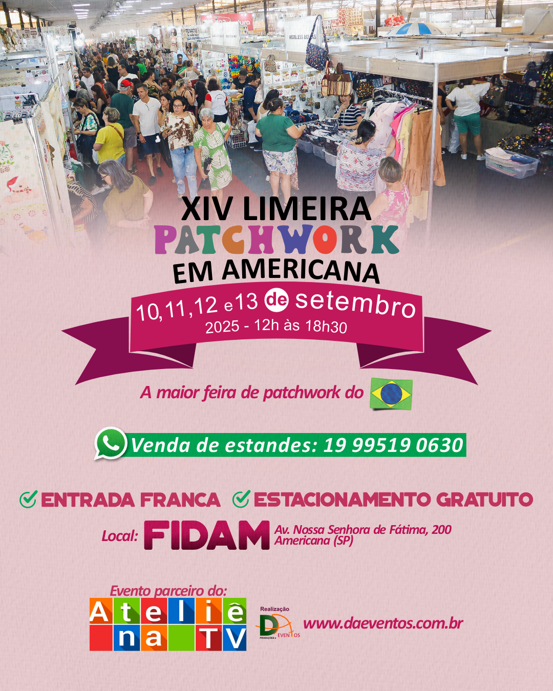 • Em 2025 a Limeira Patchwork em Americana será de 10 a 13 de setembro